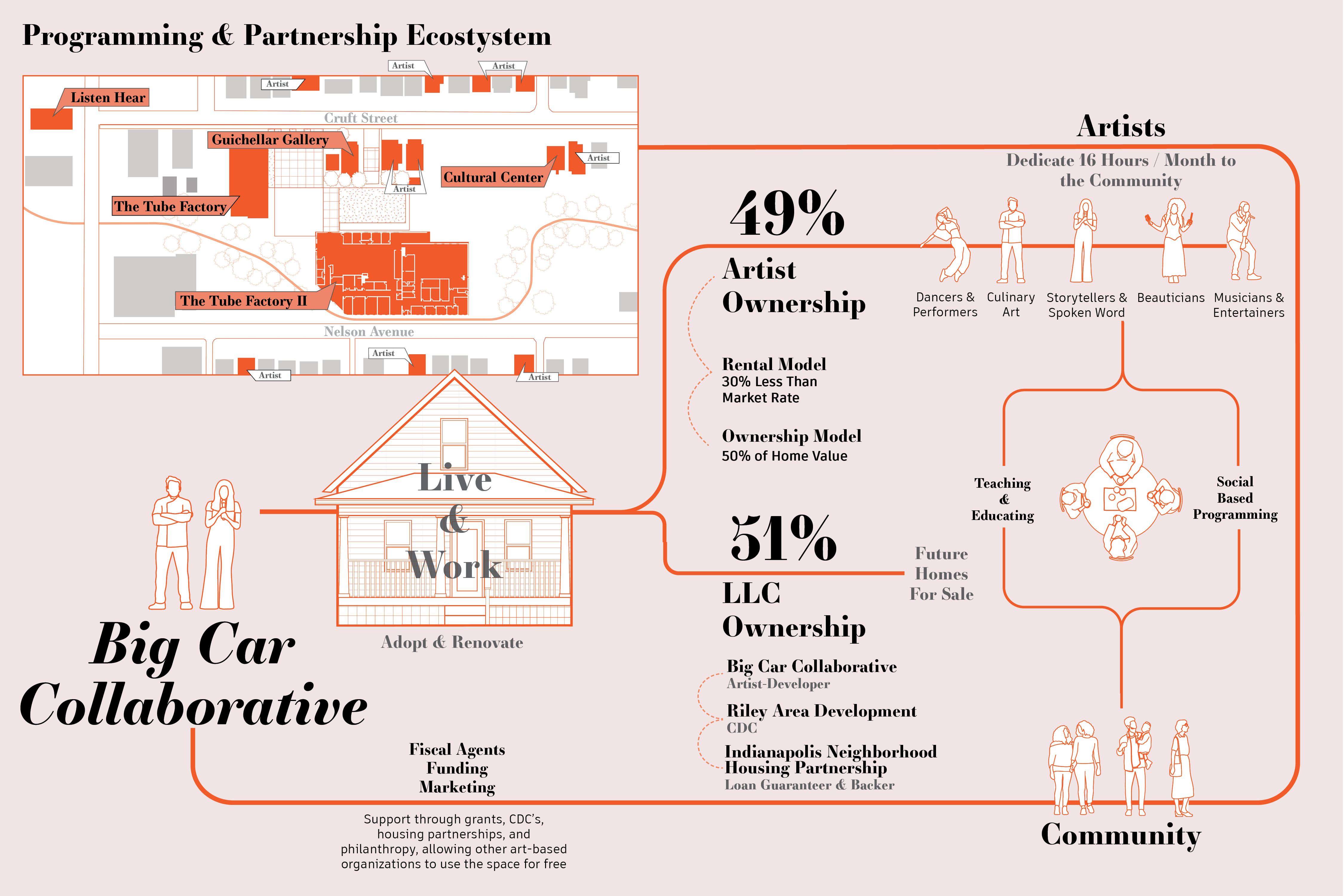 The panel discussion supplements our forthcoming Field Guide. Excerpts from this Field Guide represent the compilation of our research into arts-based development that centers and elevates the artist as city-maker. Over the past couple of years, we have worked with artist developers across post-industrial, rustbelt cities, we’ve gathered their approach, intentions, and tactics in a personal and meaningful way. The pages captured in